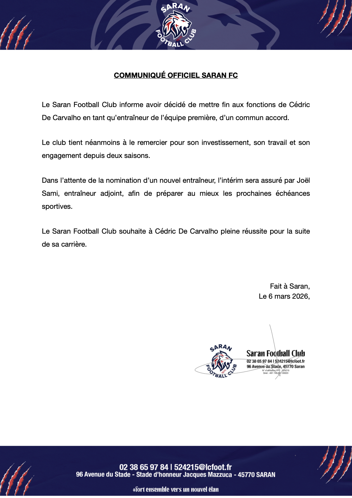 Communiqué officiel
